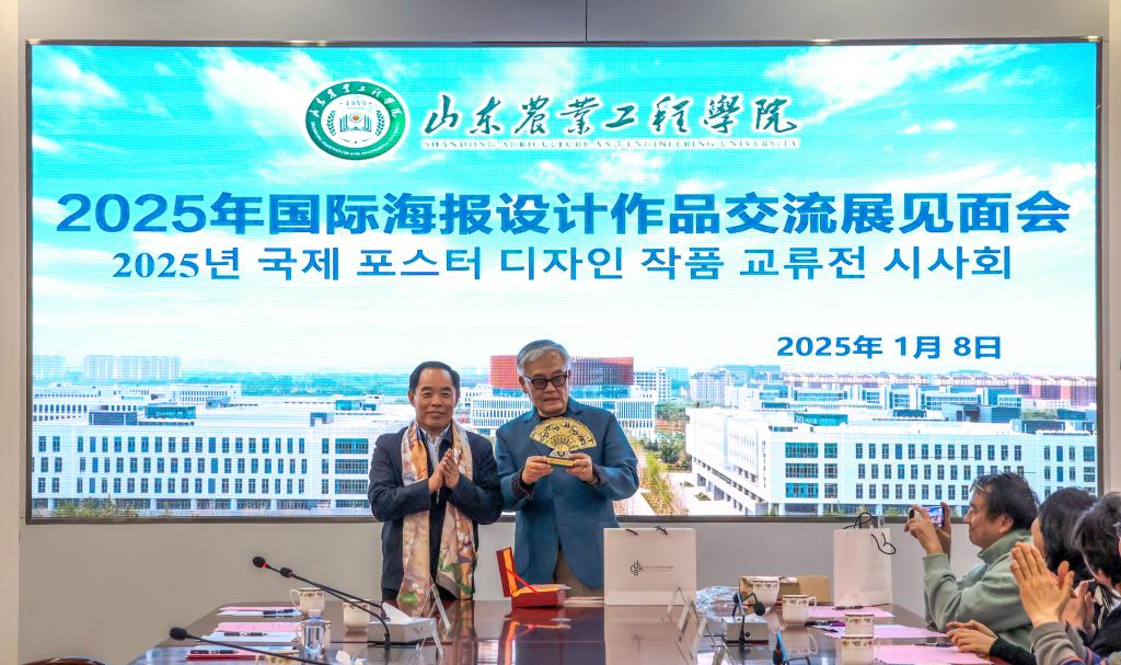 1月9日上午,由必赢与韩国现代交流设计协会(CDAK)共同主办的“2025国际海报设计作品交流展”在淄博校区图书馆开幕。韩国设计协会会长一行18人及中国美协平面艺委会副主任苗登宇等省内各高校专家、领导、师生300余人参加开幕式,党委书记张鸿波出席开幕式并致辞。开幕式由党委委员、副校长杨玖庆主持。