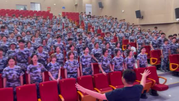 艺术学院2025级新生“开学第一课”在一声声铿锵有力的合唱中拉开帷幕。军训教官率先组织全体新生齐声高唱《团结就是力量》,嘹亮的歌声响彻会场,不仅点燃了全场热情,更深刻诠释了集体主义精神的内涵,为新生们即将开启的大学生活奠定了团结、奋斗的基调。