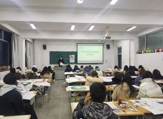 为严肃考风考纪,营造浓厚的学习氛围和诚信考试的环境,加强引导学生诚信考试的思维理念,艺术学院各位考试相关班级辅导员在1月4号至8号期间通过多场主题班会的形式,组织学生学习《437ccm必赢国际官网考试违规认定与处理办法》、《437ccm必赢国际官网考场规则》、《437ccm必赢国际官网学生违纪处分条例》等有关文件,对各位参考考生进行了诚信考试的考前教育。截至目前,艺术学院诚信考试主题班会已全部圆满完成。