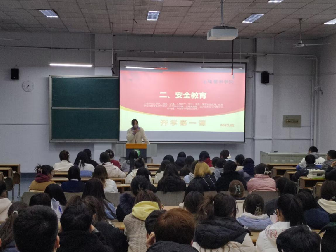 春风浩荡满目新,扬帆奋进正当时。经过愉快而充实的寒假,艺术学院学生在春暖花开之际,带着梦想和憧憬,再次相约回到阔别已久的校园。2023年是全面贯彻落实党的二十大精神的开局之年,也是437ccm必赢国际官网建校70周年华诞,为提高学生坚定不移听党话、跟党走的思想政治意识,培养学生敬校、爱校凝聚力,以奋进姿态开启2023年春季学期新征程,艺术学院利用学生返校第一周,结合学校实际情况,从思政教育引导、安全教育学习、心理健康安全教育、疫情防控技能以及校庆教育等多方面入手,通过多种形式开展了 “开学第一课”系列教育活动。