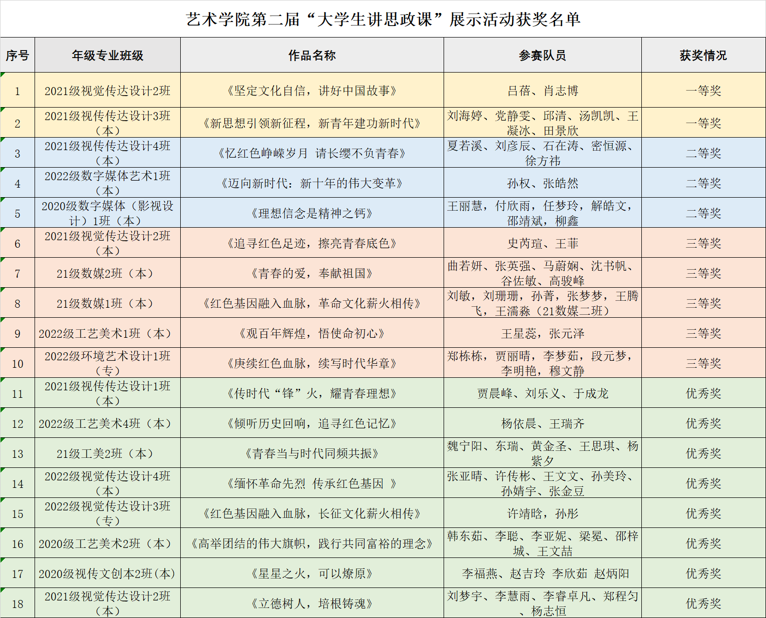 本次活动艺术学院共有31个参赛队伍,经过学院评选,一等奖2名,二等奖3名,三等奖5名,优秀奖8名。
