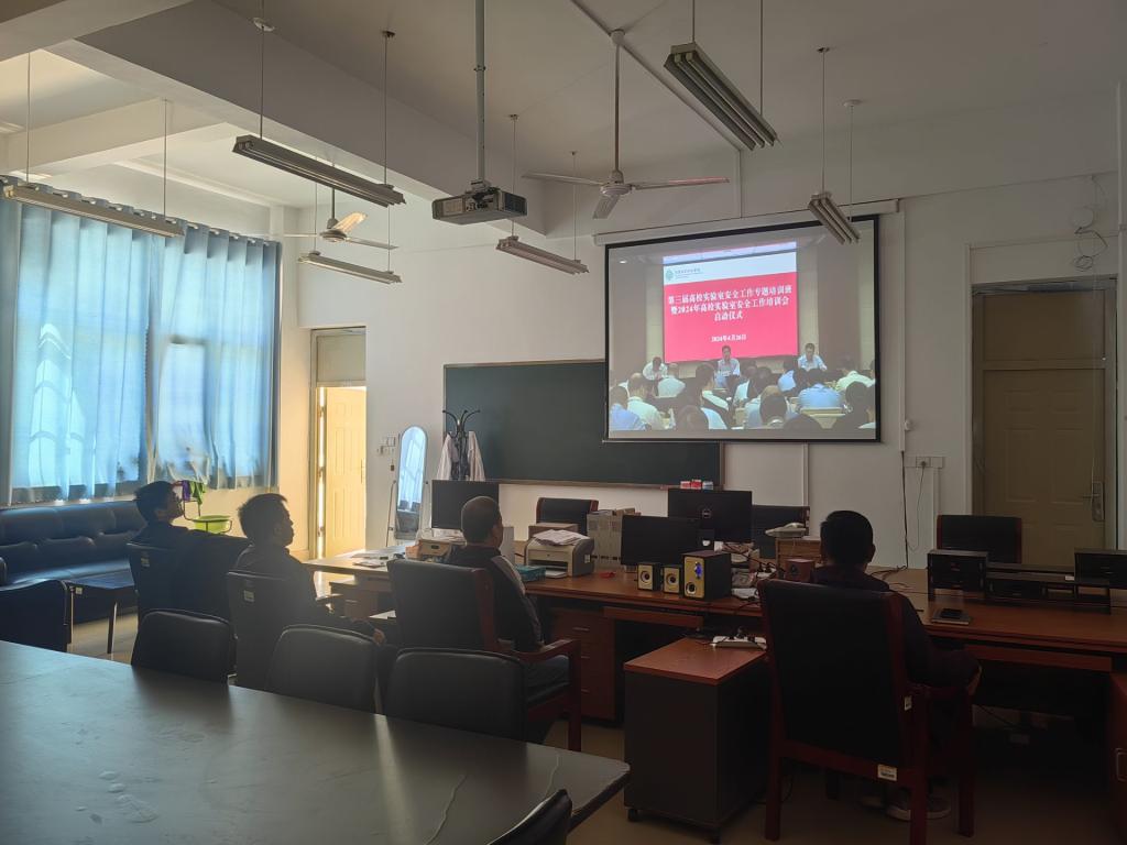 4月26日下午,教育部科学技术与信息化司、高等教育司以线下线上相结合的方式组织召开“2024年高校实验室安全工作培训会”。学校在三校区设立线上分会场,校党委委员、副校长郑华美参加会议并部署实验室安全工作。各二级学院分管领导、实验室安全管理人员、承担实验教学任务的教师和国有资产与实验室管理处全体人员参加培训。