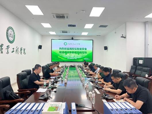调研座谈会上,郑华美致欢迎辞并简要介绍了学校的基本情况,国有资产与实验室管理处负责人汇报了学校实验室安全工作的总体情况。专家组查阅了实验室安全工作档案,实地查看了食品科学与工程学院、资源与环境工程学院的实验室、工程训练中心、学校的危化品仓库和危险废物贮存站,重点对实验室安全分级分类、实验室消防安全、危险化学品管理、危险废物管理、安全教育等方面进行了调研。