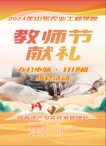 为积极响应学校庆祝第40个教师节暨“师德建设月”活动号召,9月3日-5日,国有资产与实验室管理处组织开展“向教师节献礼·办公设备维修服务活动”,对办公用计算机、打印机等设备进行维修维护。