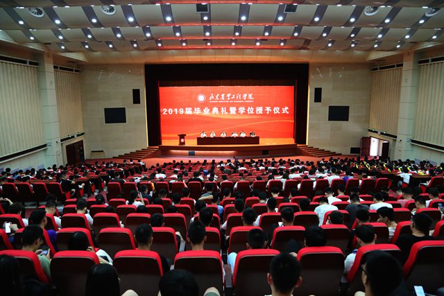 副校长杨振宁宣读学士学位授予决定,校领导依次为获得学士学位的毕业生代表授予学位,毕业典礼在欢送进行曲中圆满结束。