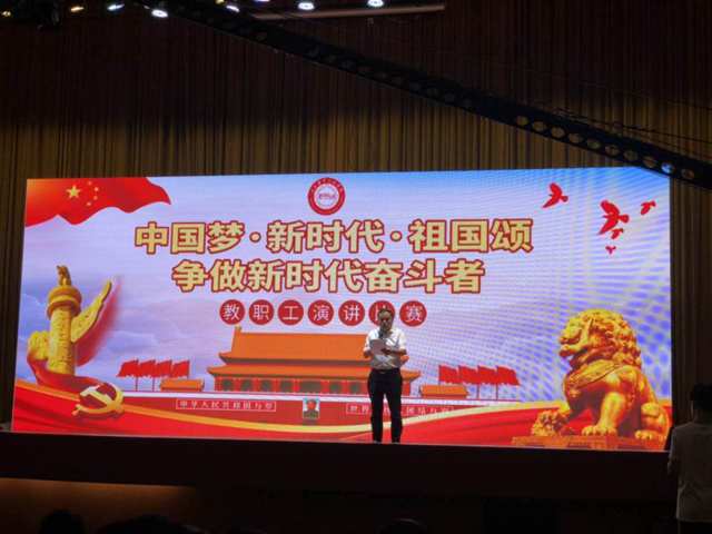 为喜迎新中国成立70周年,讴歌新中国成立后取得的伟大成就,进一步激发广大教职工的爱国之情、报国之志、兴国之责,6月24日下午,必赢在北校区学术报告厅举办“中国梦新时代祖国颂—争做新时代奋斗者”教职工演讲比赛。校党委副书记张业赏出席活动并讲话,学校各部门负责人、北校区师生代表参加了本次活动。