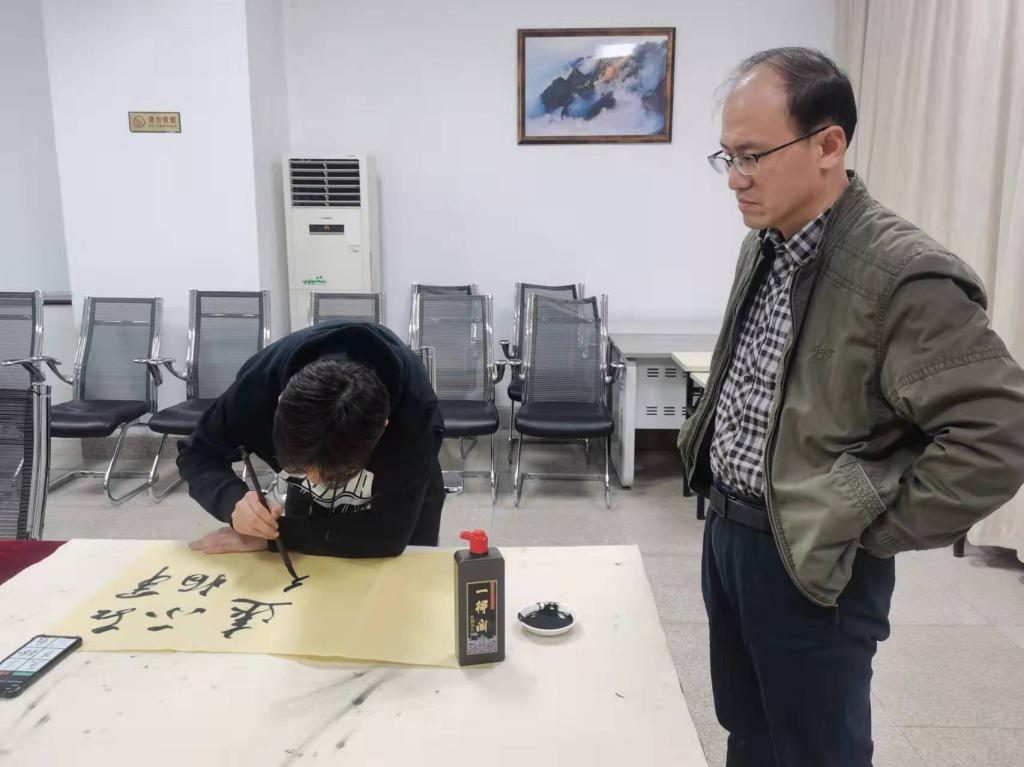 课程结束之后,孙会海部长现场指导学生书写长征诗词,大家挥毫泼墨感受红色力量,共庆建党百年。