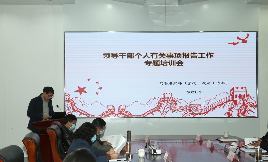 2月4日,根据省委组织部工作要求和校党委部署,党委组织部召开处级领导干部填报个人有关事项报告培训会。党委委员、党委组织部部长孙会海主持会议,全体处级领导干部参加会议。